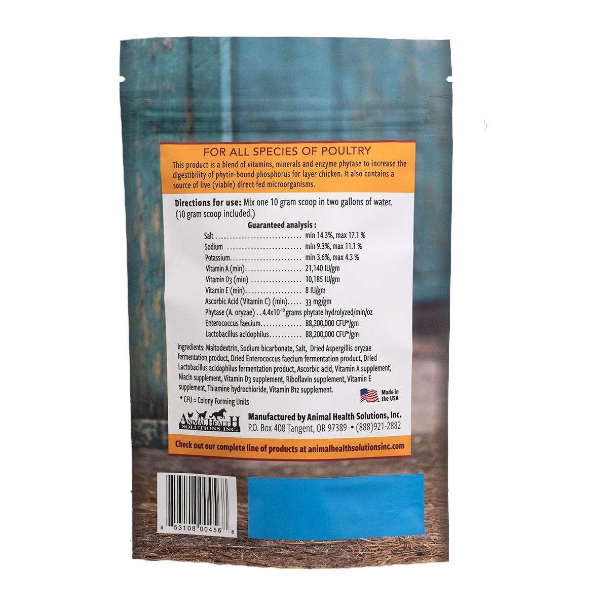 Hen Boost™ contains a proprietary blend of Microencapsulated Probiotics, Digestive Enzymes, Vitamins, Minerals and Electrolytes designed to boost overall health. Benefits include immune system stimulation, improved feed intake, digestion and hydration. Providing access to Hen Boost™ in clean water during stressful times such as heat, molting and illness will help the birds immune system respond better.